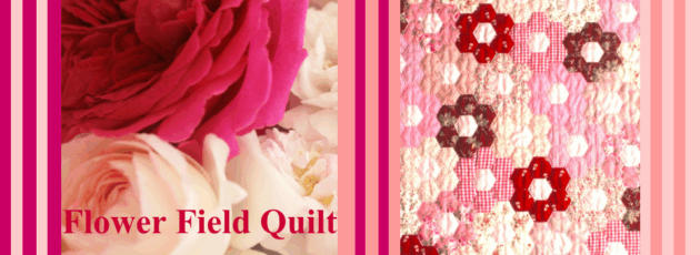 フラワーガーデンのキルトキット/赤とピンクの六角形をつないでお花畑のようなキルトを作るキット
